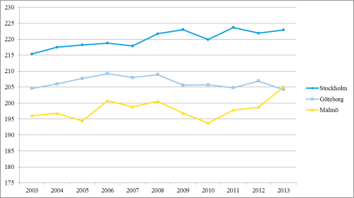 Stockholmseleverna placerar sig i topp jämfört med de andra storstäderna, där Göteborg har 204,2 och Malmö 205,1. Jag vill liksom skolborgarrådet Lotta Edholm förstås tro att det delvis handlar om skillnad mellan en liberal och en socialdemokratisk skolpolitik. Vi har satsat på lärare och på uppföljning. Sist och slutligen är det förstås lärarna och eleverna som med de verktyg de har, åstadkommer resultaten.