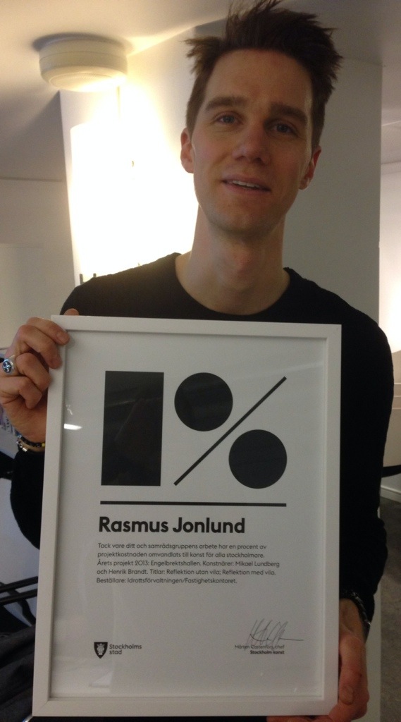 Konstprojektet kring Engelbrektshallen där jag har varit delaktig i Konstrådets arbetsgrupp belönades i går med det s.k. Enprocentpriset. Det är en ära att få ha bidragit, med en liten bråkdel, till en så prisvärd konstnärlig gestaltning.