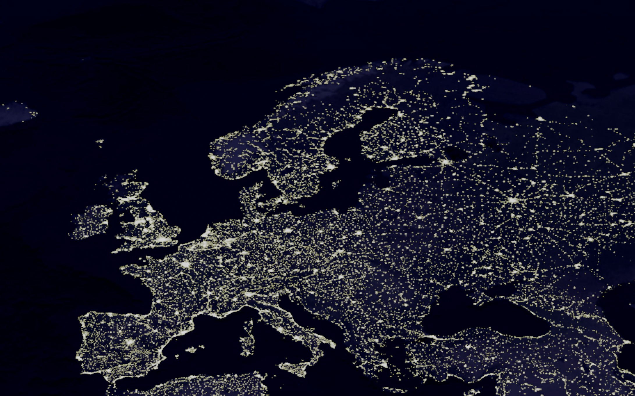 När Vaclav Havel flög över Europa såg han inga gränser. Att vår del av världen hör ihop – även utanför nuvarande EU:s gränser – syns tydligast om natten. Satellitbild från NASA via Wikimedia.