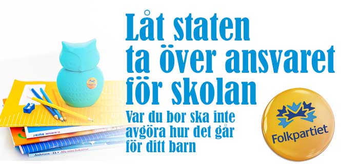 En hel del kommuner lyckas. Vi ser stigande kunskapsresultat, ökade resurser skolor och elever med störst behov, högre lärarlöner, osv. Det gäller inte minst i Stockholm och även i exempelvis Folkparti-styrda Landskrona. Men alla borde få del av den goda skolpolitiken. Genom att återge staten huvudmannaskapet för skolan, och arbetsgivaransvaret för lärarna, skapas de förutsättningarna. Många viktiga praktiska frågor kan beslutas om lokalt, skolledare och lärare får en större frihet att lösa sitt uppdrag inom styrningens ramar, och styrningen blir tydligare för både offentligt drivna och fristående skolor.