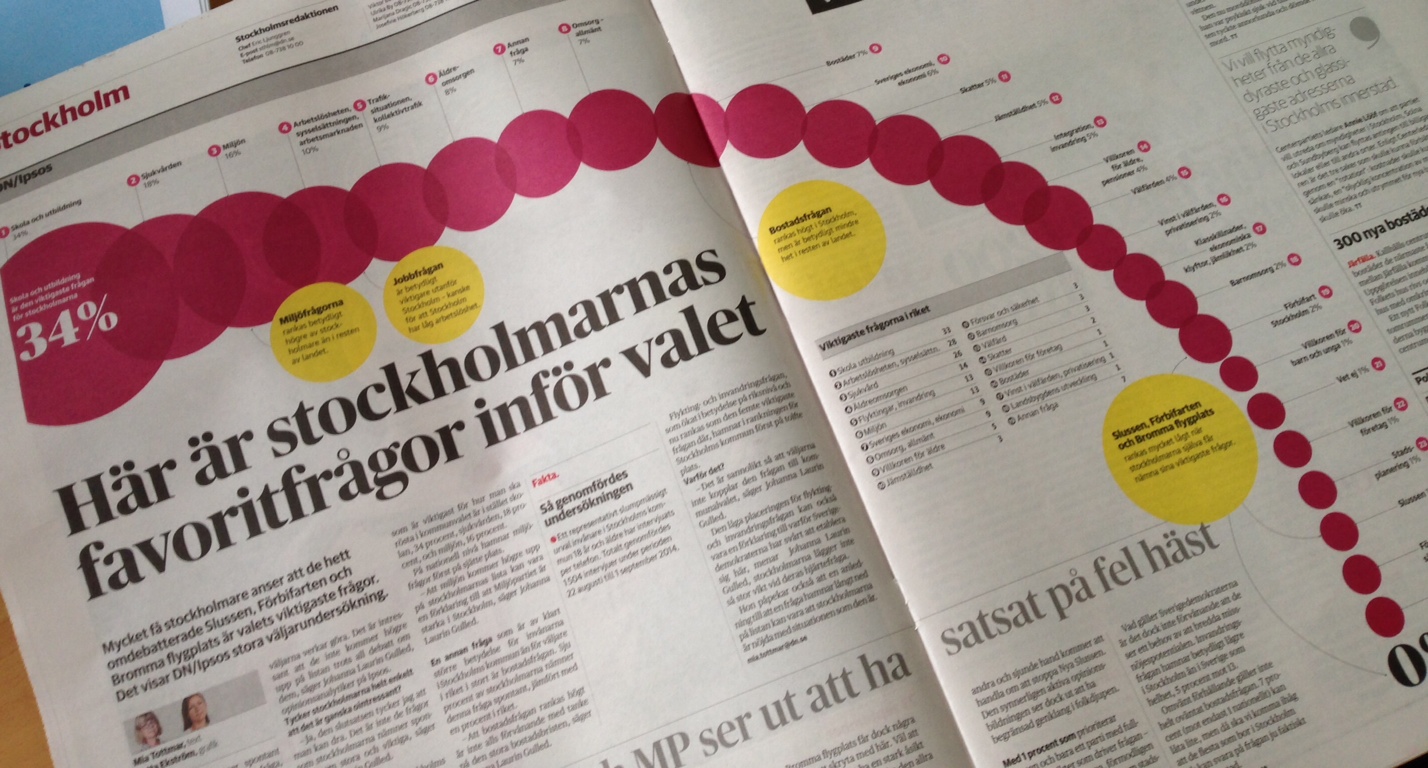 För den som har följt Stockholmspolitiken det senaste året verkar Slussen som en av de absolut viktigaste frågorna – i debatten i allmänhet och i stadsbyggnadsdebatten i synnerhet. Det högljudda motståndet mot ombyggnaden av en, förvisso central, trafikplats i Stockholm har dock gett en mycket skev bild av verkligheten. Inte bara så att förslaget till ombyggnad, trots alla arga angrepp, verkar vara det mest populära alternativet – även i en märkligt formulerad opinionsundersökning. Den allra största skevheten gäller stockholmarnas intresse för hela frågan. Som dagens DN/Ipsos-mätning om Stockholmsväljarnas viktigaste valfrågor visar, är Slussen en väldigt marginell fråga. Att den ens kämpar sig upp till en procent är ett bevis på debattens livlighet. (Undersökningen finns inte på webben, men se bilden ovan).