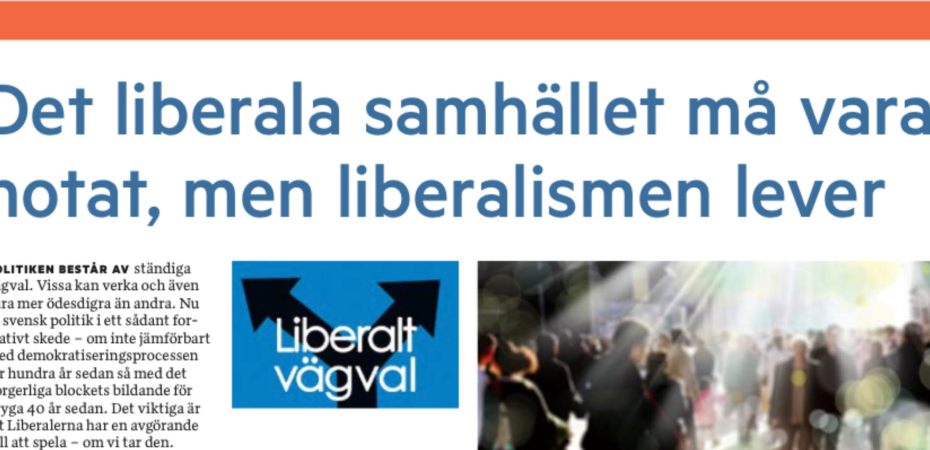 Försvara det liberala samhället – och gå på offensiven mot illiberala samhällstendenser. Leverera liberala reformer. Och var synliga och relevanta i människors vardag. Det måste vara Liberalernas vägval framåt. Om vi inte är relevanta som liberaler – vad ska vi då överhuvudtaget ha ett liberalt parti till, frågar jag i min artikel om ”Liberalt vägval” i NU. Se nedan (hela artikeltexten under bilden på tidningssidan).