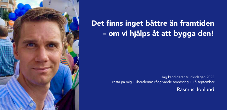 Jag tror att framtiden kan vara liberal. Men då måste vi liberaler kunna och våga ge de tydliga och principfasta svaren. Jag vill vara en av de principfasta liberalerna som gör det. Jag tror på framtiden, om vi arbetar för den. Jag vill vara med och ta ansvar. Därför kandiderar jag till riksdagen i Stockholms stad och län, 2022.